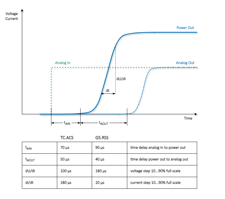 REGATRON 瑞士瑞佳通TC.ACS 与 G5 系列产品的典型延迟及阶跃响应