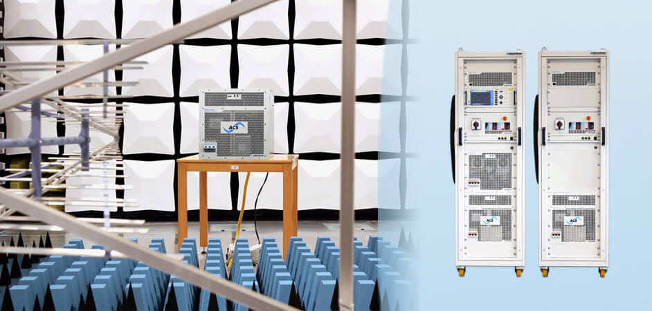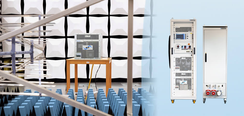 这套交钥匙解决方案可完全满足 IEC/EN 61000-4-X 标准的 EMC 抗扰度测试要求,包含 ACSControl EMC 软件,以及用于实现快速电压斜率和高电流峰值的可选 TC.VSE 设备。ACSControl 提供专用测试界面、波形可视化以及自动生成测试报告功能。